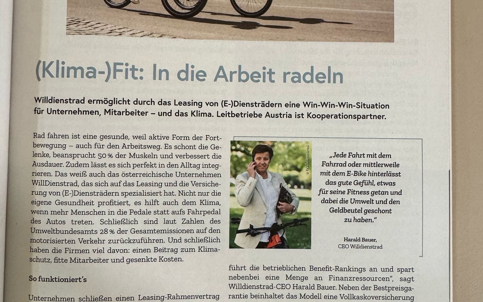 Artikel Wiener Wirtschaft vom 8.5.2025 „Mehr als nur ein Fahrrad: Das Dienstrad als Gewinn für alle“ News