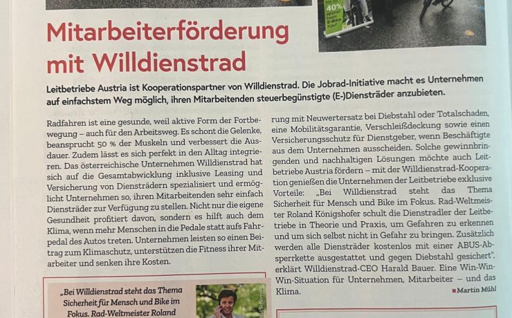 Kurier- Artikel vom Oktober 2023: "Firmenrad? Jobrad? WILLDIENSTRAD.AT"