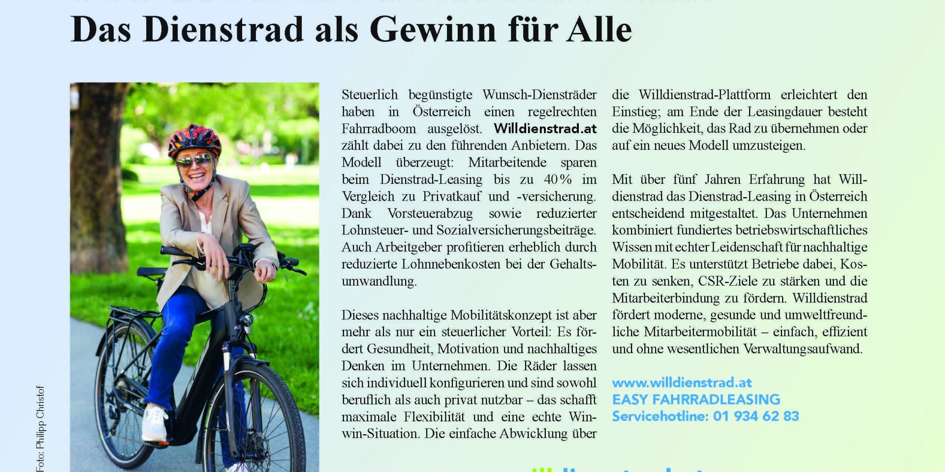 „Das Dienstrad als Gewinn für alle“ Drahtesel – das österreichische Fahrradmagazin 2 / 2025 Published on: 18. Juni 2025 Published in: News You may also like Artikel Wiener Wirtschaft vom 8.5.2025 „Mehr als nur ein Fahrrad: Das Dienstrad als Gewinn für alle“ News Firmenrad-Leasing: Leitbetriebe immer ein Dienstrad voraus! News